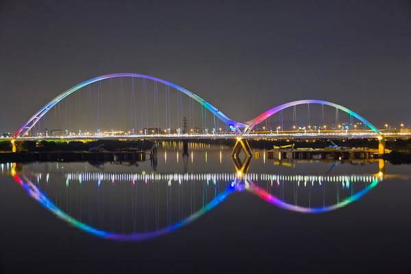双拱弧状的桥面,在晚上将变身色彩兵纷,让经过的行人纷纷停下拍照欣赏!